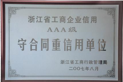 | 2007年浙江省工商企業(yè)信用AAA級守合同重信用單位 |