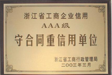 | 2003年浙江省工商企業(yè)信用AAA級守合同重信用單位 |