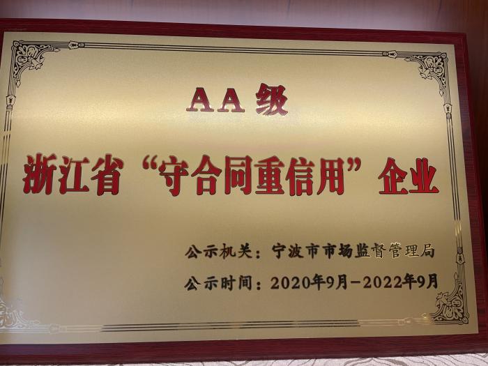 | AA級浙江省“守合同重信用”企業(yè) |