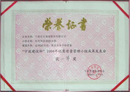 “寧波建設(shè)杯”2004年優(yōu)秀質(zhì)量管理小組成果發(fā)表會獲一等獎