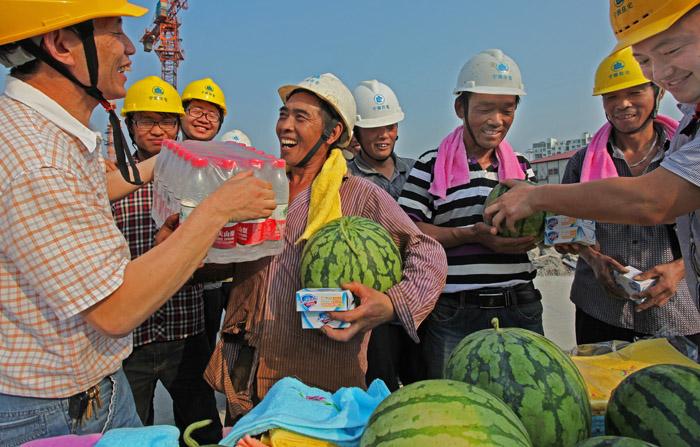 寧波住宅建設(shè)集團(tuán)慰問組到江北安置房項(xiàng)目部建筑工地送清涼