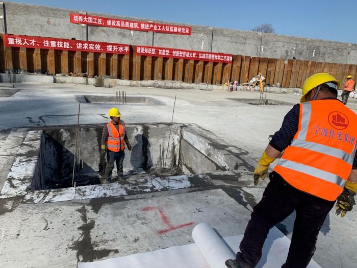 一一下午1點半,比賽在裝飾樁基分公司承建的寧波創(chuàng)園科技WCH-07-u7地塊項目部舉行。本次比武的選手分為A、B、C、D、E、G,、H和I共8組,每組2人協(xié)同作業(yè)。 比賽內(nèi)容分為地下室底板、承臺1.5厚合成高分子防水卷材鋪貼。比賽評審項目包括鋪貼用時、著裝、防護用品穿戴、搭接長度、封閉嚴(yán)密、有無鼓包及空鼓褶皺、鋪貼方法及搭接順序、細(xì)部處理質(zhì)量、落手清等項目,以及最后鋪貼完成后觀感情況共計11項,評委們對每組進(jìn)行考核打分,綜合得分最高者評出第1至3名。